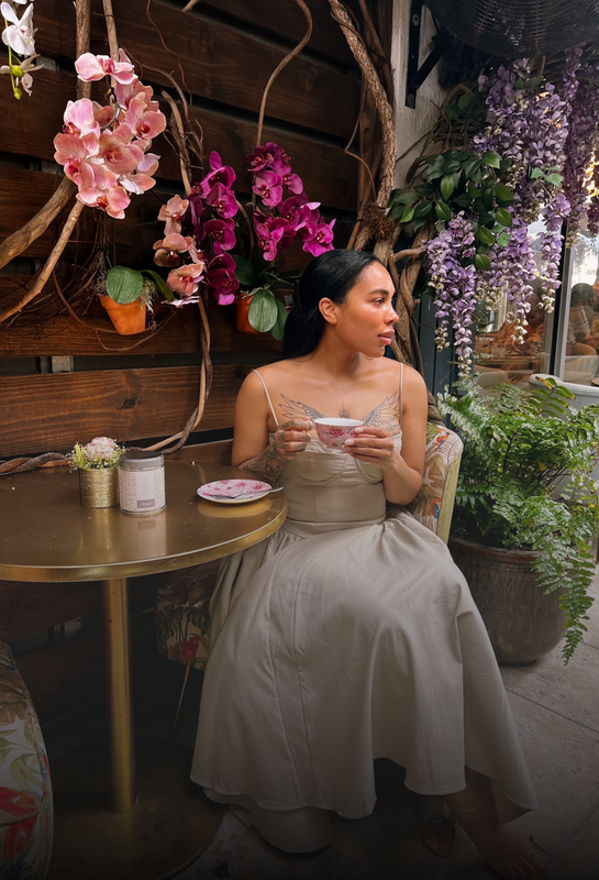 Embodying the gentle rhythm of a loving heart, Love Tea by Dreka Gates with Yaupon Bros is a soothing blend of organic yaupon, cinnamon, hibiscus, ginger and peach. As it steeps it transforms into a blush pink, mirroring love’s hues. This heart-opening infusion promotes relaxation, calmness and stress release.